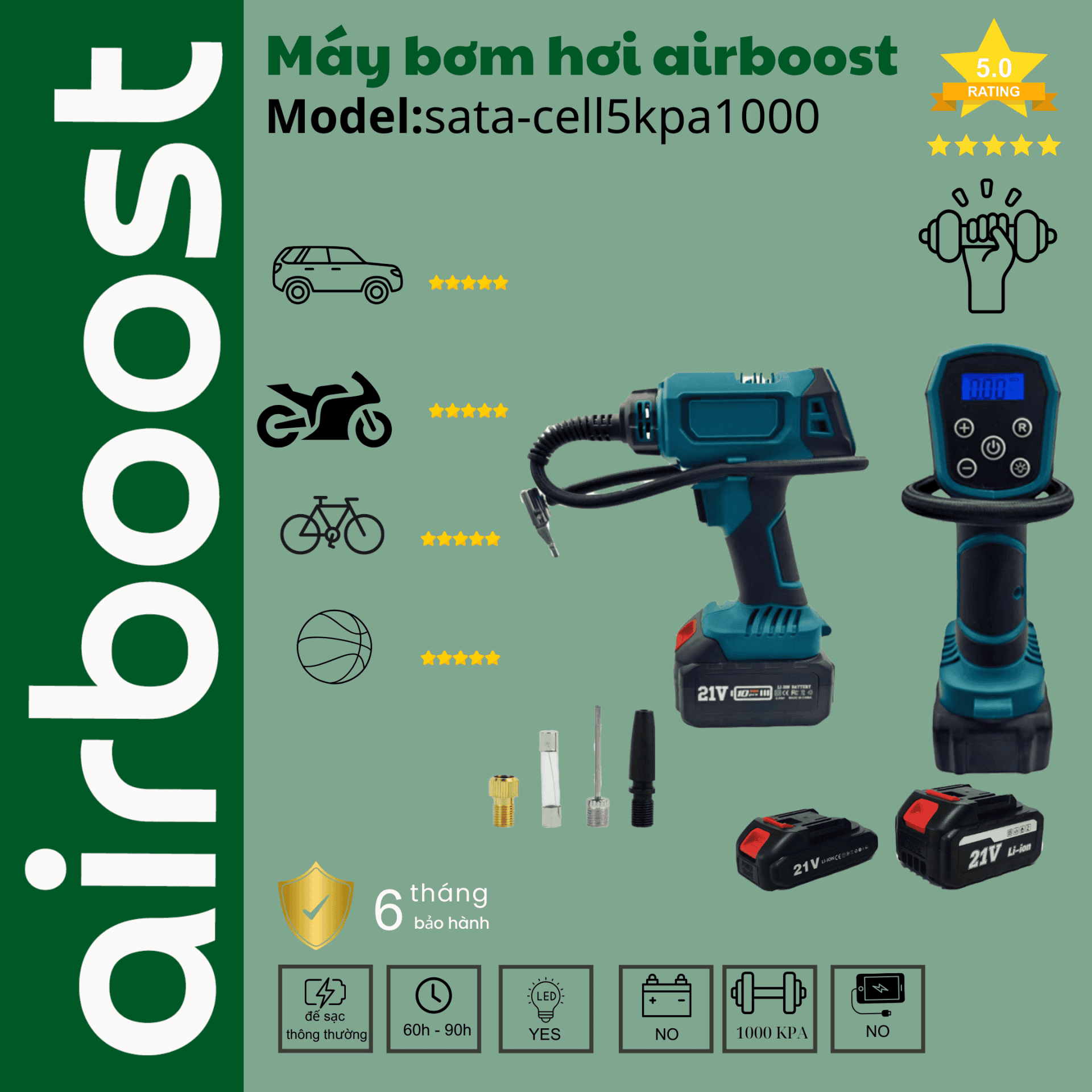 AirBoost Flex S02 đi kèm với chính sách bảo hành 6 tháng, cam kết 1 đổi 1 trong vòng 3 ngày nếu có lỗi từ nhà sản xuất. Điều này đảm bảo rằng bạn luôn yên tâm khi sử dụng sản phẩm của chúng tôi.