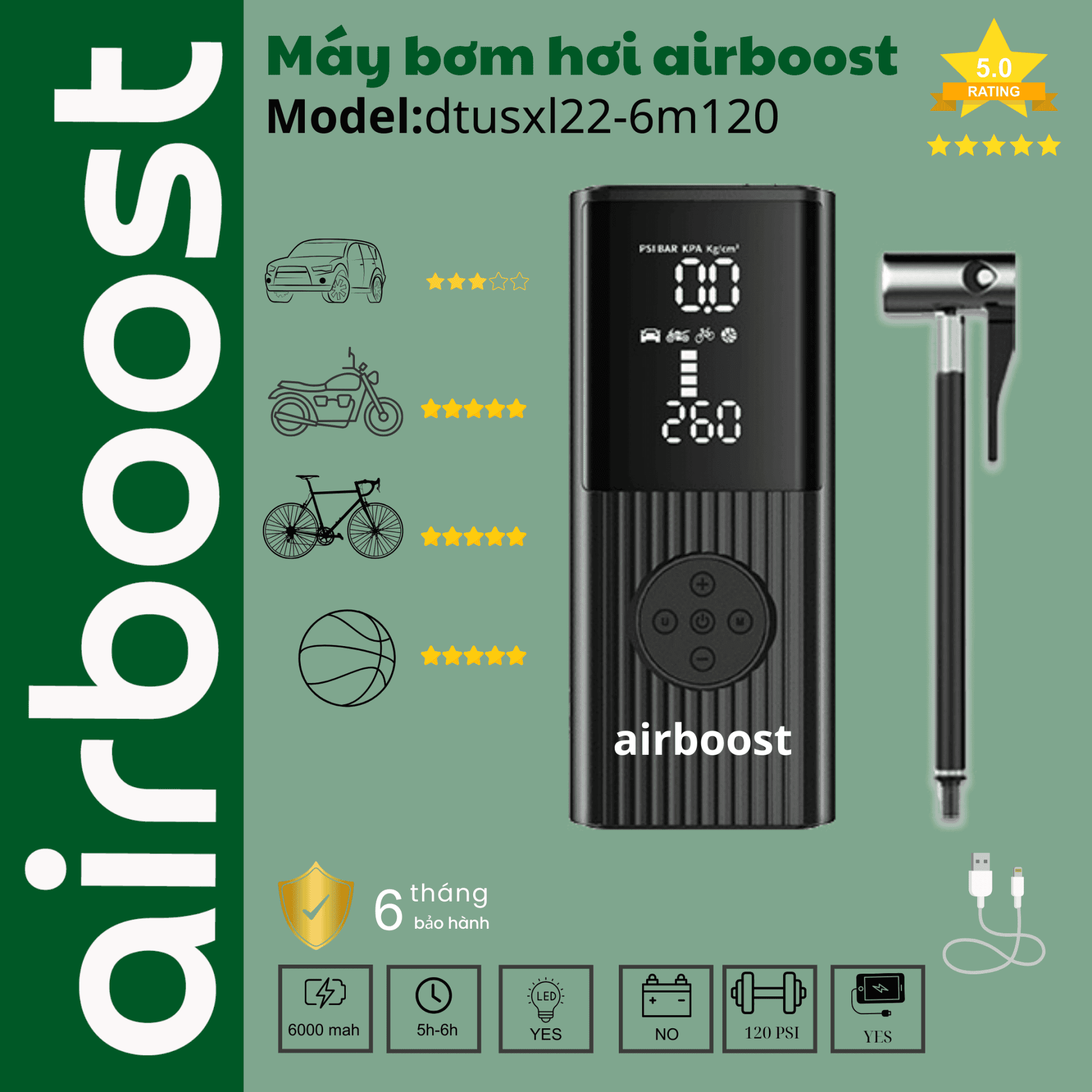 AirBoost Plus A02 đi kèm với chính sách bảo hành 6 tháng, cam kết 1 đổi 1 trong vòng 3 ngày nếu có lỗi từ nhà sản xuất. Điều này đảm bảo rằng bạn luôn yên tâm khi sử dụng sản phẩm của chúng tôi.
