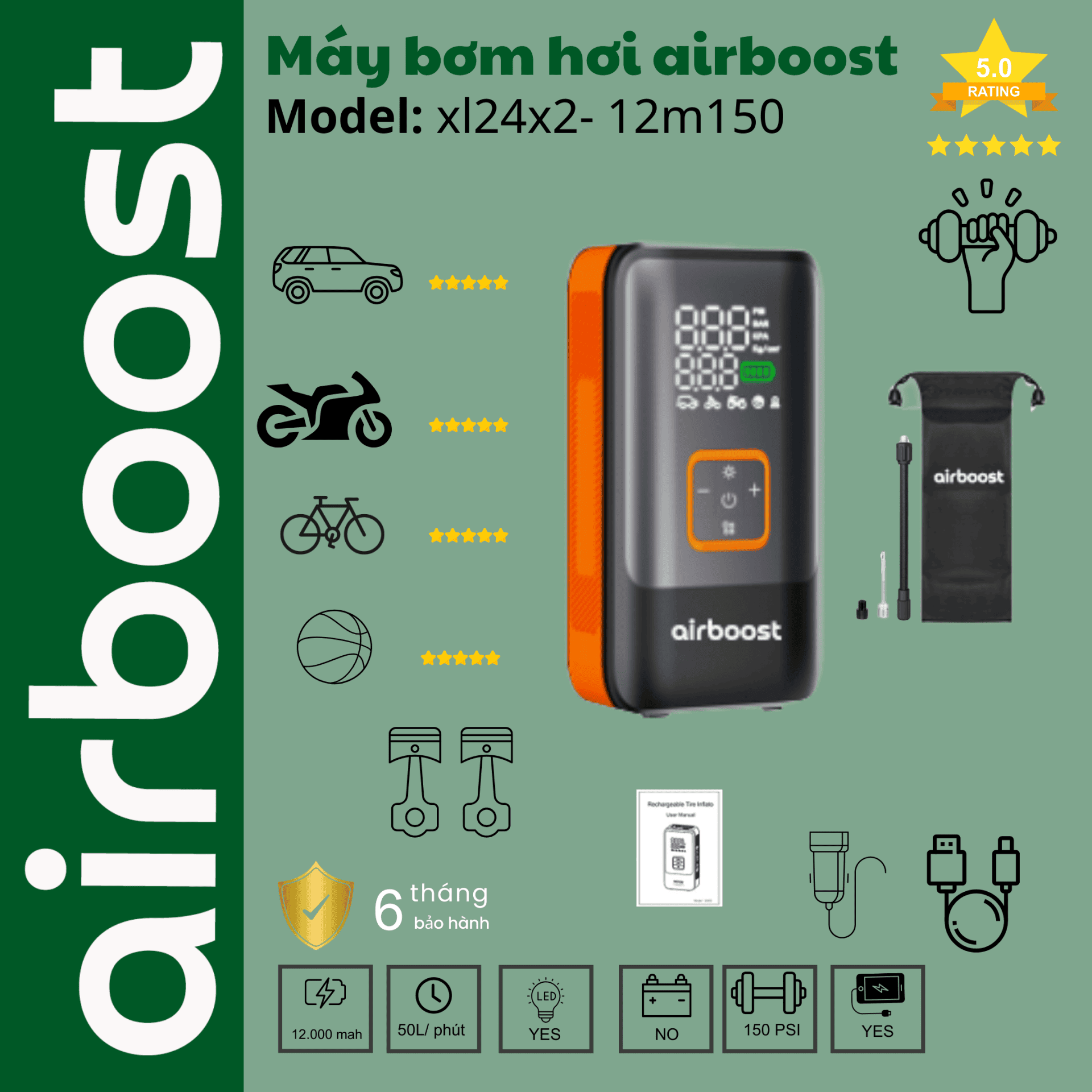 AirBoost Pro P01 đi kèm với chính sách bảo hành 6 tháng, cam kết 1 đổi 1 trong vòng 3 ngày nếu có lỗi từ nhà sản xuất. Điều này đảm bảo rằng bạn luôn yên tâm khi sử dụng sản phẩm của chúng tôi.